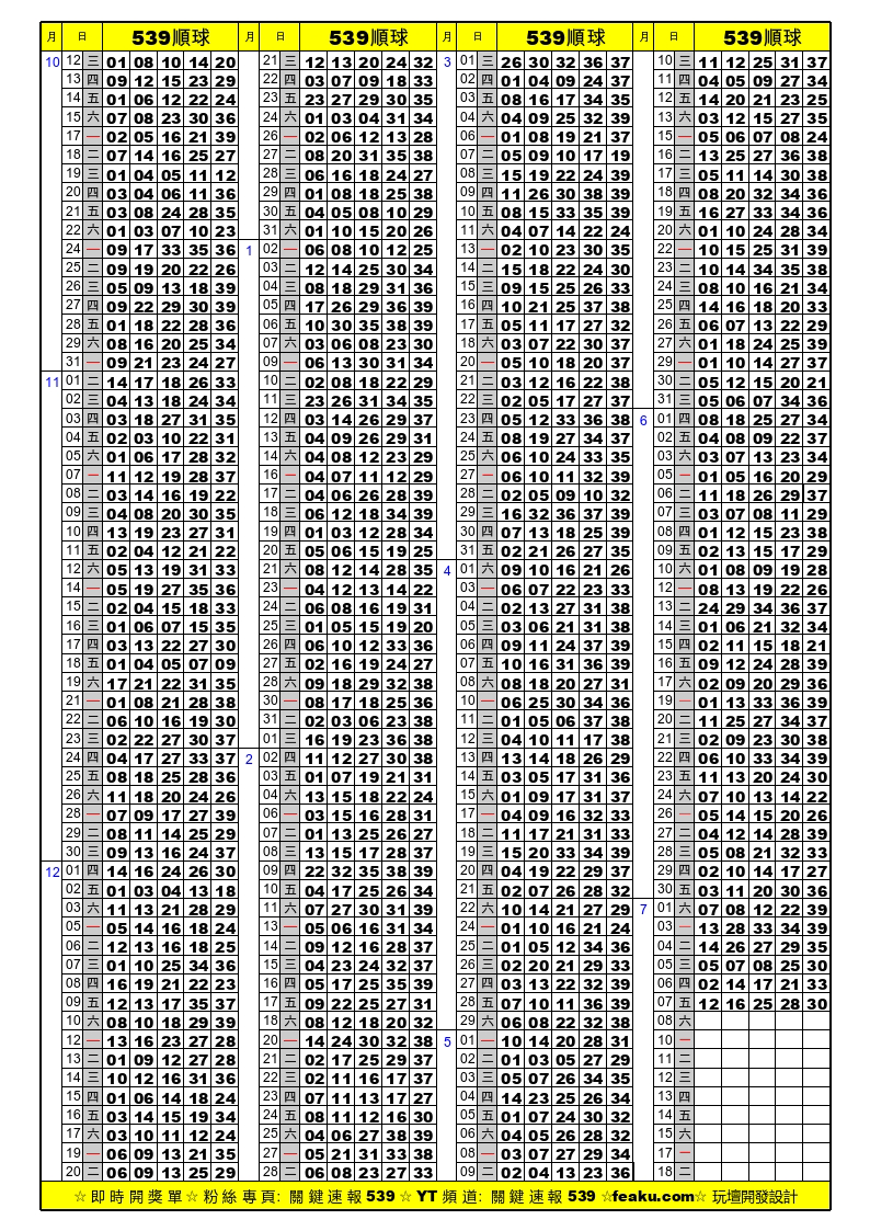 許多資深彩民會使用539順球單,在FB有許多大神也會使用順球單來抓取版路,有的會收費有的則是完全免費,小編個人覺得完全不需要額外花錢去跟別人購買版路,自己心靜下來一步一步破解版路才是王道。